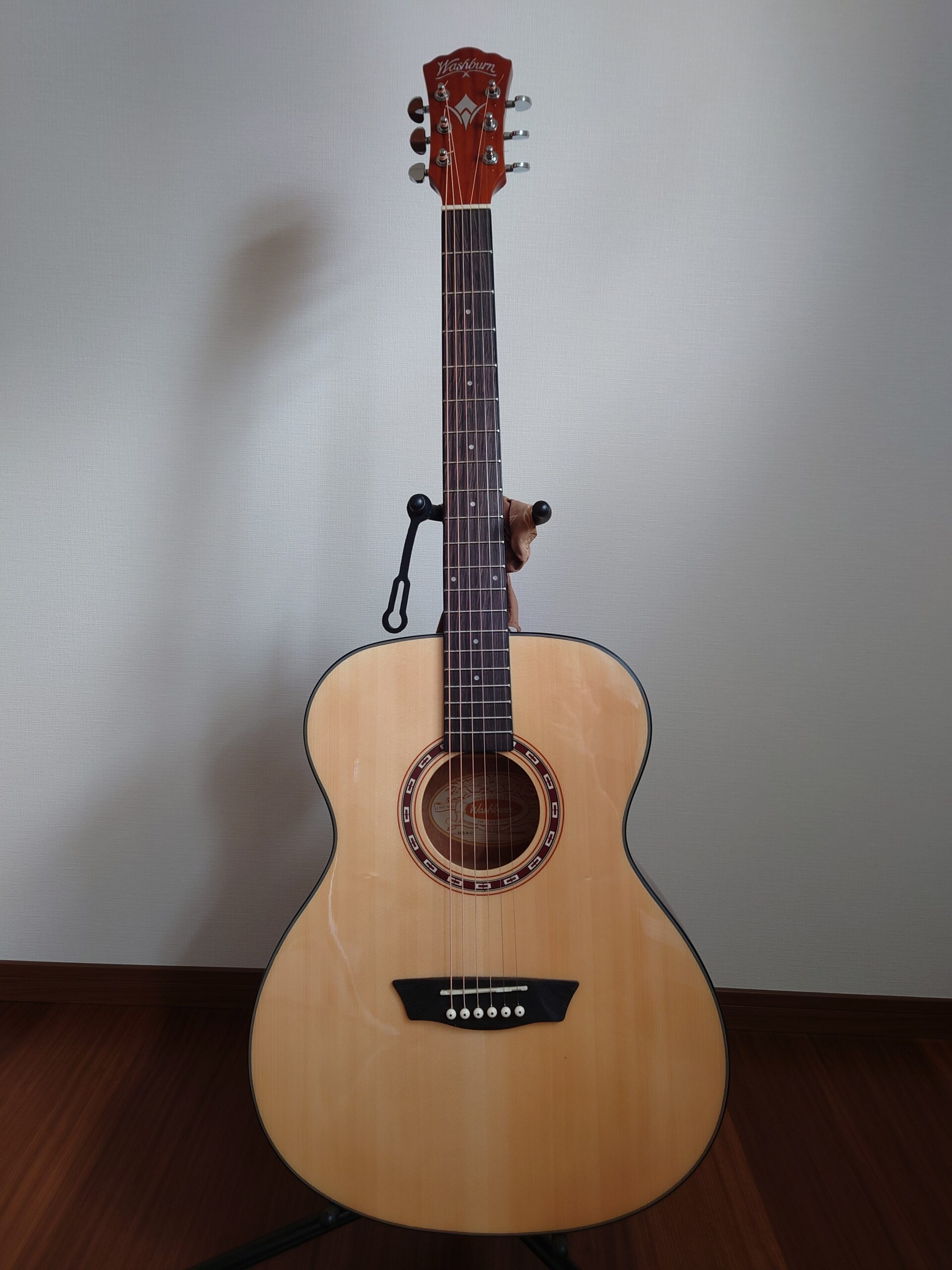 ちなみにこのアコースティックギターは、老舗メーカーWASHBURNのF5というモデルです。名古屋の大須で33,000円で買いました。満足です。ぷらぷらギター試奏しながら何軒か散歩して、しっくりきたのでその場で買ってきました。中国製でお求めやすい価格なので即決できますね!